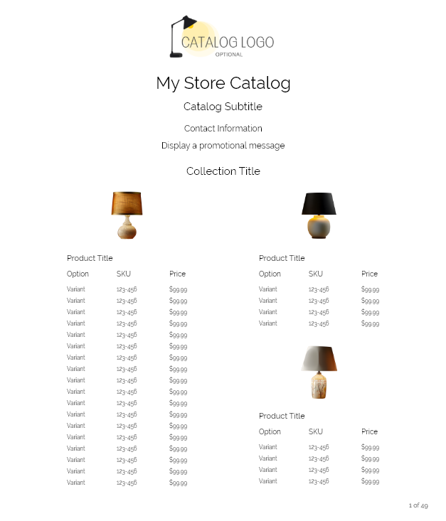 - Easy to Share — Send polished catalogs by email, link, or print anytime